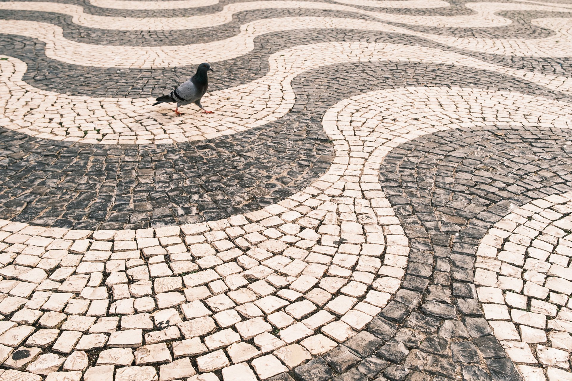 Wiederholung erzeugt Ordnung. Fensterreihen, Säulen, Pflastersteine, gleichförmige Bewegungen. Muster beruhigen, weil sie vorhersehbar sind.